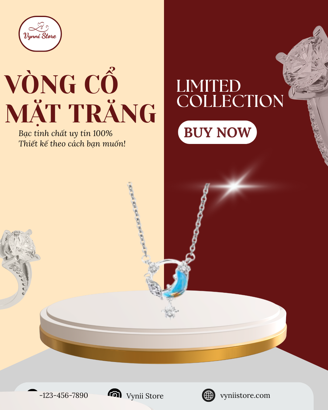 Dây chuyền bạc mặt trăng huyền bích
